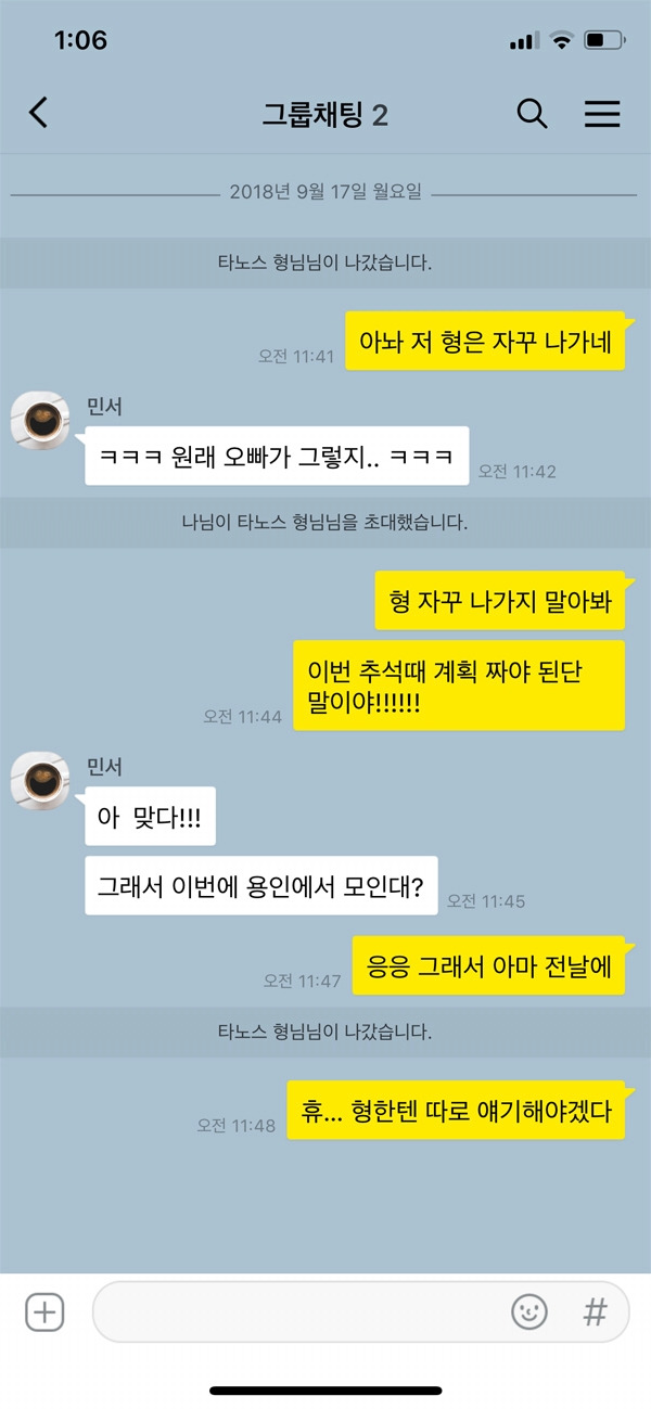 카톡계에도 인피니티 스톤으로 시공간을 초월하는 타노스처럼 계속 사라지는 유형이 있다. 분명히 카톡을 읽었음에도 불구하고 무반응, 그리고 무심하게 퇴장한다. 화가 난 것도 아니고 그 방이 불편한 것도 아닌데 그냥 단체 카톡을 볼 여유가 없다던가 쌓인 카톡 메시지를 읽기 귀찮을 때 보통 이런 경우가 많다. 그래도 개인적으로 메시지 하면 꼬박꼬박 대답을 해주니 다행. 이런 타노스형은 보통 성향 차이이니 자꾸 카톡 방을 나간다고 핀잔 주지 말자.
