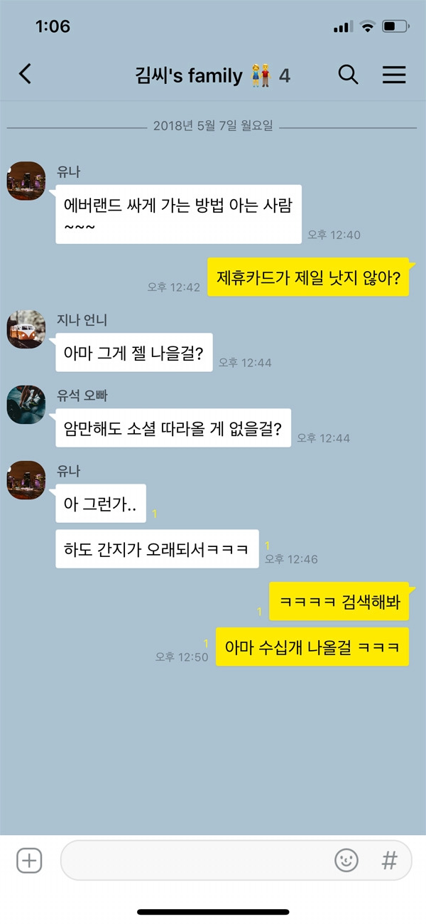 포털 사이트에 검색해봐도 충분히 아니 더 많은 정보를 찾아볼 수 있을 텐데 구태여 가족 채팅창에 질문하는 경우도 있다. 질문의 난이도도 사실 크게 어려운 것이 아니라 금세 검색할 수 있음에도 불구하고 꼭 채팅창을 이용한다. 아마 너무 많은 결과를 하나씩 찾아보기 귀찮거나 채팅창 구성원 중 실제 사용해 본 경우, 혹은 그 정보에 대해 직접적인 경험이 있는 사람의 실질적인 조언을 얻기 위해서 그런 것 아닐까?