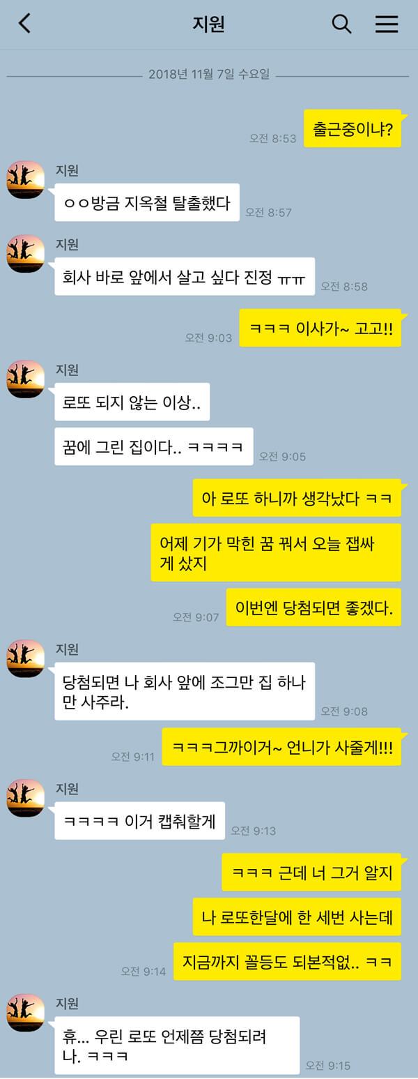 ‘로또 1등에 당첨되면 제일 먼저 뭘 하면 좋을까? 그다음에는? …’ 상상뿐이고 현실 가능성은 희박하지만 나름의 의미와 순위를 매겨가며 로또 당첨의 꿈을 꾸는 직장인들. 예전에는 범상치 않은 꿈을 꾸면 로또를 샀지만 이제는 토요일이 오기 전 로또를 구입하는 일이 다반사가 됐다. 자동도 사보고 수동도 열심히 해보지만 5천 원도 당첨되기 힘든 건 나뿐인 걸까? 로또 당첨되는 사람들 숫자만 봐도 꽤 많던데 도대체 나는 언제쯤 당첨되는 걸까? 아무도 들어주지 않는 투정을 열심히 하면서 그렇게 또 로또를 산다.