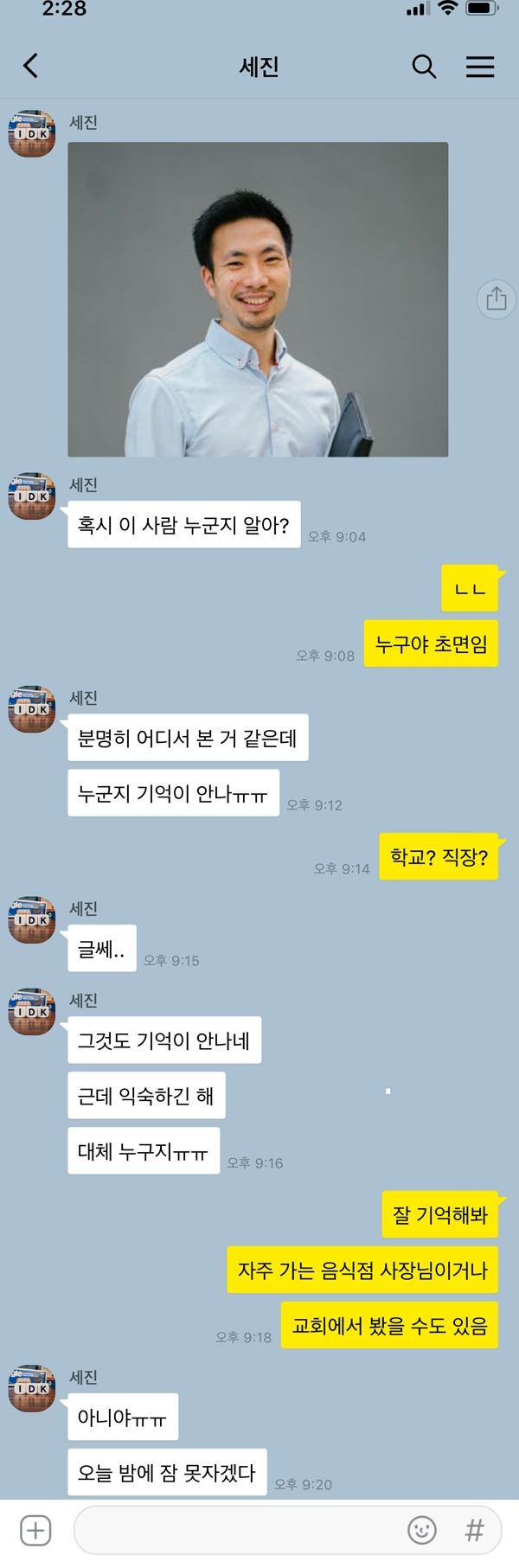 분명 낯이 익은 사람인데 이름이 뭐였는지는 고사하고 도대체 어디서 어떻게 만나게 된 사람인지 도통 기억이 나지 않을 때가 있다. 심각한 경우에는 한 번이 아니라 여러 번 마주쳤는데도 기억이 제대로 나지 않는다. 이렇게 사람을 잘 기억 못 하는 문제는 검색을 해도 나오지 않는 데다가 주변 사람들도 모르는 사람이라고 한다면 정말 답 없이 본인 혼자서 끙끙 앓을 수밖에 없다. 만약 그 상대방이 먼저 말을 걸어온다면 최대한 반가운 얼굴로 인사하고 조심스럽게 대화를 시작하면서 대화 내용으로 힌트를 얻는 것도 방법이다.