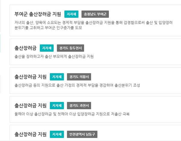 출산 장려금 제도는 각 시, 도, 지자체별로 출산 후 부모들의 경제적 부담을 덜어주는 육아지원이다. 이를 통해 일시금이나 분할금의 형태로 출산을 위한 금액을 지원하는 사업이다. 지역별 출산 장려금은 10만원에서 최대 500만원까지 지원 금액이 다양하며 아이를 낳은 가정의 경제적 부담을 덜어주기 위한 제도라고 할 수 있다.