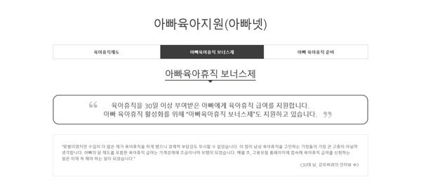 아빠 육아휴직 보너스제는 부부가 한 자녀를 순차적으로 육아를 위해 휴직할 경우 두 번째 사람의 육아휴직 3개월 급여를 100%까지 지원하는 정책이다. 또한, 둘째 자녀부터는 이 정책을 통해 200만원까지 지원된다고 한다. 아이를 위한 아빠들의 육아휴직이 많이 늘어나는 추세로 이런 정부 지원정책을 잊지 말고 챙겨 받으면 좋겠다