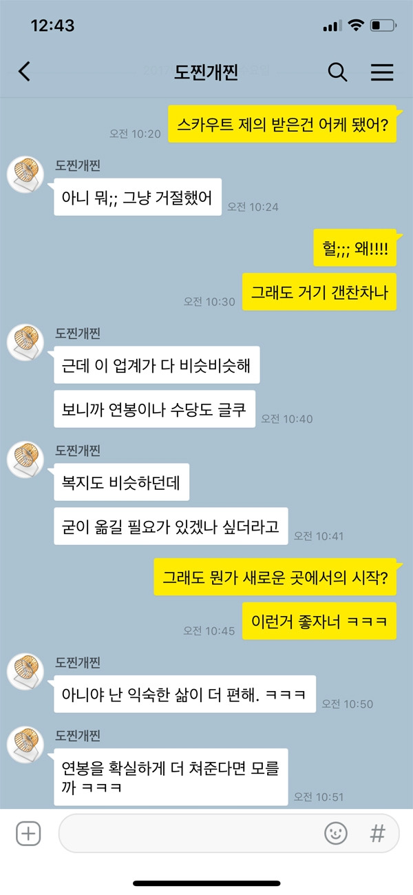 새로운 환경, 새로운 사람들, 새로운 업무 등 낯설지만 그래도 그 속에서 느끼는 벅차오르는 무언가가 있다. 하지만 시간이 지날수록 이전 회사와 별반 다르지 않음을 느끼게 된다. 특히 전공 분야나 기존에 하던 업무와 비슷한 직무로 이직했을 경우에는 그 양상이 더욱 빠르게 나타난다. 일의 강도나 연봉, 복지 정도는 차이 날 수 있겠지만 일에 대한 성취감이나 만족감, 진행 방식 등은 비슷할 수 있다. 결국 돌고 돌아 제자리로 돌아올 것 같은 느낌이라면 익숙한 곳에서 효율적으로 일하는 것이 나을 수 있다.