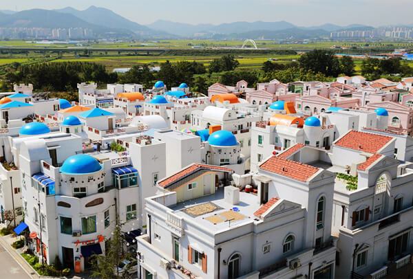 지중해 마을은 아산시 탕정면에 조성된 공간으로, 이국적인 유럽풍 건물들이 모여 있어 이름 그대로 지중해의 시골 마을에 온 듯한 착각을 불러일으키는 곳이다. 남서쪽은 남프랑스의 프로방스풍, 남동쪽은 그리스의 산토리니풍으로 꾸며져 있다. 무엇보다 천사의 날개, 등대 모양의 빨간 우체통을 배경으로 사진을 찍을 수 있는 곳이 관광객들에게 포토존으로 인기가 높다.