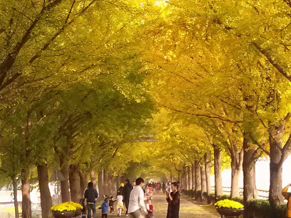 전국의 아름다운 10대 가로수길 중 하나로 선정된 곡교천변 은행나무길은 현충사 입구의 곡교천 충무교에서부터 현충사 입구까지 조성되어 있는 2.2km 길이의 도로다. 가을이면 350여 그루의 은행나무가 일제히 노란 빛을 내 평일에도 많은 인파가 몰려드는 명소다.