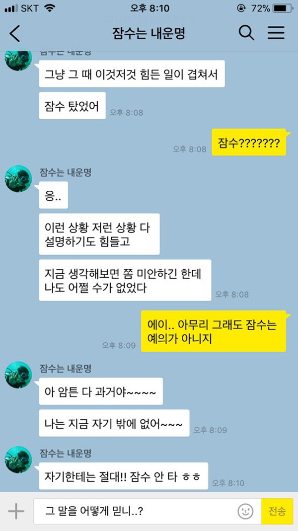 세상에서 가장 예의 없는 이별이라고 불리는 잠수 이별. 아무리 본인의 상황이 힘들고 괴롭다고 할지라도 사랑했던 사람에게 보일 수 있는 태도라고 할 수 없다. ‘그 땐 어쩔 수 없었어’라는 말로 책임을 회피하는 남친, 과연 앞으로는 그럴 일이 없다고 단언 할 수 있을까? 인간관계에 있어서 최소한의 예의도 없는 남자를 어떻게 믿고 미래를 맡길 수 있을지 의문이 든다면 다시 한 번 진지한 고민을 해보자. 과연 말로만 듣던 잠수이별을 했던 남자를 계속 만나야 할지 말아야 할지.