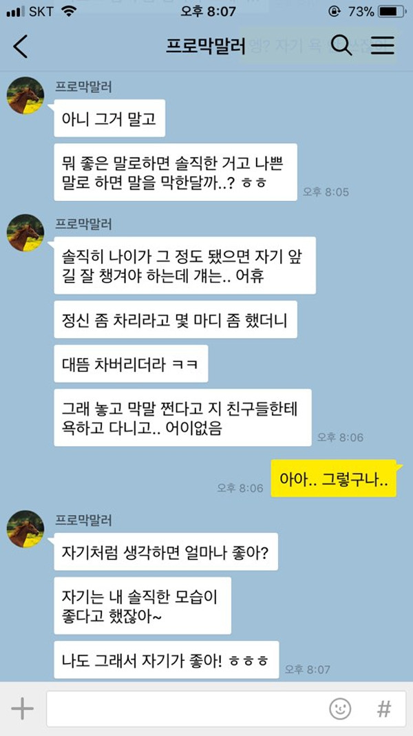 솔직함과 막말은 전혀 다르다. 솔직하다는 말로 막말을 포장하려는 남친이라면, 이 관계 충분히 다시 생각해봐야 할 여지가 있다. 특히 사랑과 신뢰의 관계로 맺어진 여자친구에게 막말을 했던 남친이라니. 남자친구는 속 좁다는 말로 표현하겠지만, 남친이 무심코 던진 막말에 전여친은 상처받고 헤어짐을 고했을 것이 뻔하다. 살짝만 어긋나도 입이 험해지는 남친, 지금이라도 조금의 낌새가 보인다면 하루빨리 생각을 고쳐 보는 것을 추천한다.