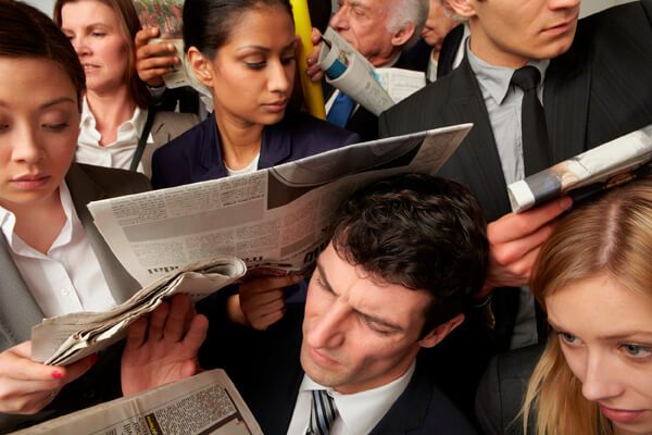 사람들이 많이 모이는 아침 출근시간이나 저녁 퇴근 시간. 버스나 지하철은 항상 만원이 된다. 이때에는 너도 나도 힘든 상황이기 때문에, 최대한 목적지까지 빨리 도착하기만을 바라는 마음을 갖기 마련이다. 특히 정말 사람이 많은 경우에는 기둥이나 손잡이만 간신히 붙잡을 정도로 여유 공간이 없기도 한다. 그러나 이렇게 좁은 공간에서도 굳이 굳이 핸드폰을 하겠다고 꺼내는 중독자들이 있다. 문제는 공간이 좁다 보니 다른 사람의 어깨에 은근슬쩍 손을 올려놓기도 한다는 것. 그렇게 핸드폰이 하고 싶으면 집에 가서나 하세요! 라고 힘껏 외치고 싶게 만드는 유형이다.