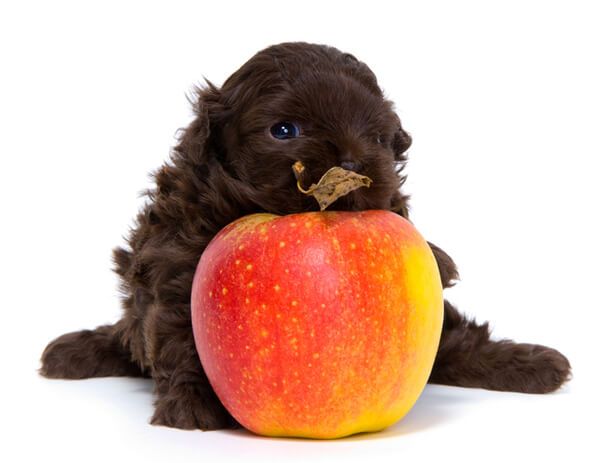사과에는 비타민 AㆍB1ㆍB2ㆍB6ㆍCㆍE를 비롯해 베타카로틴, 니아신, 식이섬유, 아연, 엽산, 인, 철분, 칼륨, 칼슘, 단백질, 탄수화물 등의 많은 영양소가 함유되어 있어 강아지의 건강에 매우 이롭게 작용할 수 있다. 항산화 작용이 뛰어나 항바이러스, 항균작용에 좋으며, 사과의 풍부한 식이섬유는 강아지의 변비 개선 및 예방에 도움이 된다. 스트레스와 피로 회복에도 도움이 되며, 사과의 펙틴 성분은 유독 성분을 흡수해 피부 또한 좋게 해준다. 강아지에게 사과를 줄 때는 독성 성분이 있는 씨앗은 반드시 제거하고 주어야 한다.