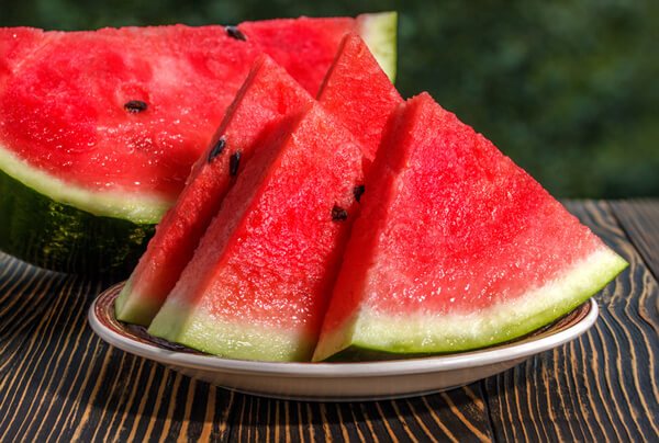 수박은 수분 함량이 많은 과일로, 수분 보충 및 갈증 해소에 도움이 되며, 해열 및 해독, 이뇨 작용을 도와 부종에도 효과가 있다. 또한 칼로리가 낮아 체중 조절이 필요한 강아지에게도 부담 없이 먹일 수 있다. 이 밖에도 수박에는 비타민 AㆍB6ㆍCㆍ티아민 등이 다량으로 함유되어 있어 면역력 개선에도 도움이 되며, 수박의 라이코펜 성분은 강아지의 암 예방에 도움이 될 수 있다. 단, 수박을 강아지에게 먹이기 위해서는 수박의 씨를 꼭 제거해야 하는데, 강아지가 수박 씨를 먹을 경우 장폐색을 일으킬 수 있다.