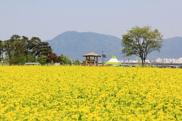 경기도 데이트 코스로 손꼽히는 곳 중 하나인 구리 한강 시민공원. 5월이면 유채꽃이 만개해 프랑스의 목가적 퐁광을 보는 듯한 착각을 불러일으킨다. 뿐만 아니라 9~10월에는 코스모스 단지로 변한다. 또 강 연안에는 자전거 도로, 산책로가 조성되어 있어 강바람을 맞으며 마음껏 달릴 수 있다.