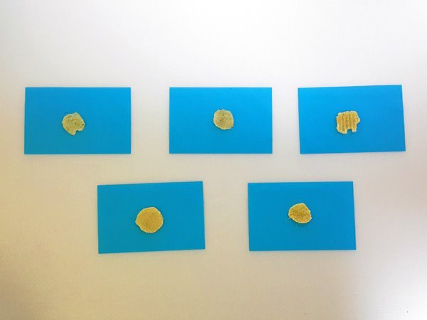 이 중에 무엇을 선택할지 고민을 하고 있었던 중 기름종이가 퍼뜩 떠올라 화장품 가게에서 우리가 흔히 쓰는 기름종이를 구매했다. 처음에는 ‘감자Chip’ 모습 그대로 기름종이에 올린 채 3분의 시간을 쟀는데, ‘기름이 이렇게 안 묻을 수 없다’는 생각이 들었다. 결국 동그랗게 잘라 표면을 납작하게 한 상태로 두 번째 실험을 진행했다. 하지만 처참한 실패를 맞게 됐다.