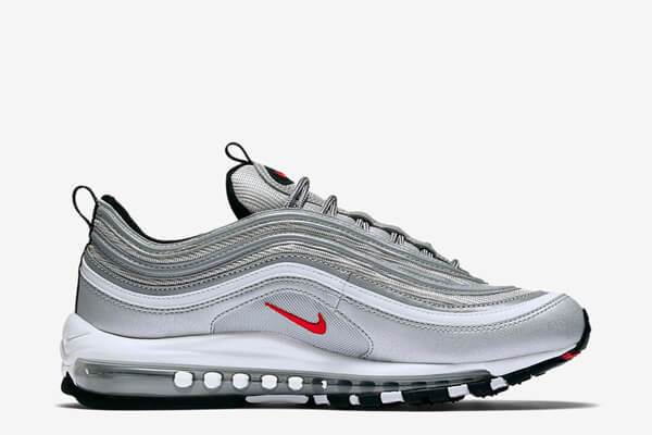 에어맥스 95만큼이나 큰 인기를 누리고 있는 에어맥스 97. 최근 출시 20주년을 맞아 에어맥스 97 프리미엄인 카모플라쥬 패턴의 인터내셔날 에어를 선보이며 주목을 받기도 했다. 에어맥스 97의 가장 큰 매력포인트는 바로 옆 라인. 물결을 연상시키는 부드러운 곡선이 독특한 분위기를 풍겨내는 신발이다. 에어맥스 95와 함께 나이키 에어맥스 라인을 대표하는 신발이라고 할 수 있다.
