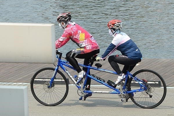 가장 흔한 형태인 2인용 자전거를 비롯한 다인승 자전거를 일컫는다. 한강이나 관광지에서 흔히 볼 수 있는 2인용 자전거는 어느 한쪽이 자전거를 타지 못할 때에 특히 유용하게 쓰이는데, 이때 앞사람이 중심을 잡을 줄 알아야 한다. 이러한 특성을 활용해 패럴림픽에서도 정식 종목으로 채택된 바 있다.