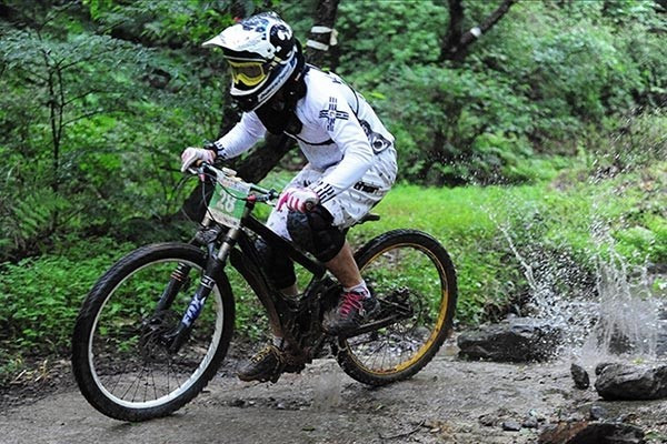 산꼭대기에서 시작해 산 아래까지 내려오는 경주용 자전거. 수 킬로미터에 이르는 거리를 단 몇 분만에 주파하므로 빠른 속도에서도 제어가 가능하도록 하는 장치들이 자전거 앞, 뒤로 달려 있으며, 주행의 안전성에 치중해 설계한다.