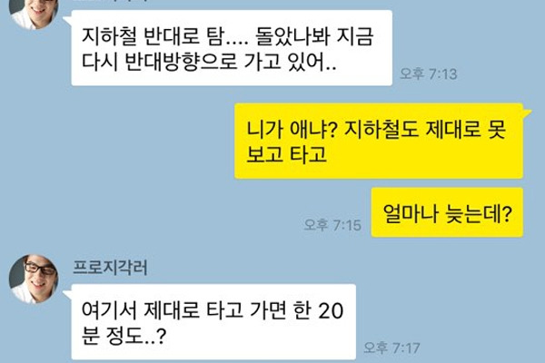 짜증이 나면서도 어이없어 웃음이 터지게 되는 유형이다. 어린 아이도 아니고 얼마나 정신없이 나왔으면 버스, 지하철을 반대로 타게 되는 건지 이해하기가 어렵다. 너무 자주 사용했을 시 ‘이상한 애’, ‘정신없이 사는 애’라는 타이틀을 얻거나, 핑계임이 들통 날 가능성이 매우 높으므로 조심해야 하는 핑계이기도 하다.