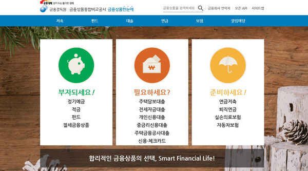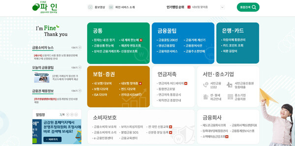 금융감독원이 안내하고 있는 마지막 조회서비스는 금융상품 한눈에로, 적금, 대출, 펀드, 연금, 보험 등 은행·증권·보험회사 등 여러 금융회사에서 판매하고 있는 다양한 금융상품의 금리, 수익률 등을 각 금융협회나 금융회사 홈페이지를 일일이 방문하지 않고도, 한 번에 쉽게 비교할 수 있는 서비스이다. 파인( fine.fss.or.kr )에 접속해 필요 정보를 클릭하면 확인할 수 있다.
