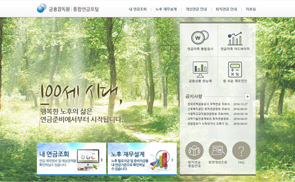 통합연금포털은 금융소비자가 본인이 가입한 연금의 계약정보(연금종류, 가입회사, 상품명, 연금개시(예정일), 적립금·평가액 등)와, 55세부터 90세까지 매년 수령 예정인 연금액을 통합 조회할 수 있는 서비스이다. 이 역시 금융감독원이 운영하는 사이트( 100lifeplan.fss.or.kr )의 서비스 메뉴에서 확인이 가능하다.
