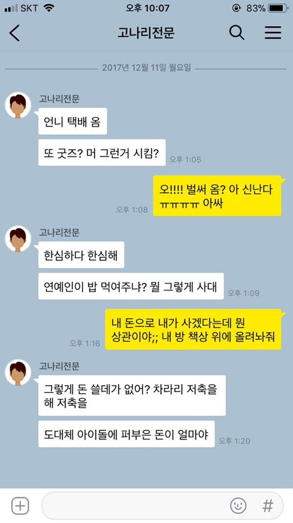 아니요, 제 밥은 제가 먹습니다만. 코덕들이 화장품 사는 것처럼, 독서광들이 책 사는 것처럼, 내 취미생활에 내 돈을 쓰겠다는데 굳이 굳이 태클을 거는 이들이 있다. 내 돈으로 아이돌에게 돈을 쓰던, 저축을 하던 무슨 상관이신지? 라고 되묻고 싶어지는 유형이다. 물론 연예인이 밥을 먹여주진 않는다. 그러나 “보기만해도 배부르다”라는 말이 있듯이, 정신적으로 풍족함을 채워준다면 그걸로 충분하지 않을까.