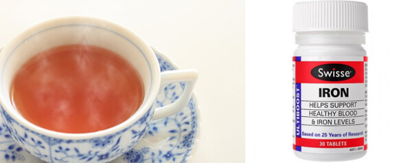 흔히 볼 수 있는 음식 중 홍차, 녹차, 와인, 포도, 연근, 도토리묵에는 떫은 맛을 내는 타닌 성분이 들어가있다. 타닌은 철분을 끌어와 결합물을 생성하는데, 이때 이 결합물이 철분의 체내 흡수율을 떨어뜨리게 된다. 즉, 홍차나 녹차 등에 있는 타닌이 철분과 결합해 철분 고유의 성분을 변화시키는 것이다. 따라서 빈혈 약을 복용한 후 1시간 내에는 차를 마시지 않는 것이 좋다.