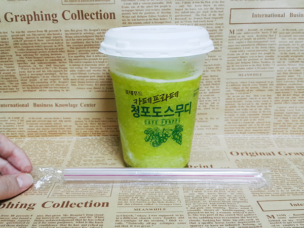 입맛저격: 마치 청포도 알사탕을 녹여먹을 때 맛이 떠오름. 어린시절 먹던 추억의 슬러시 맛! 먹을수록 중독되는 청포도 스무디.