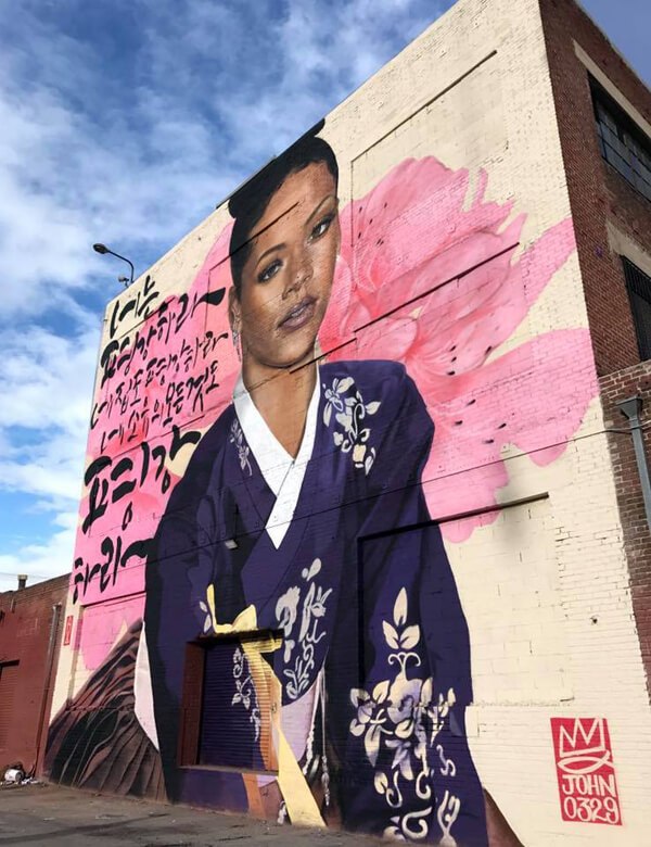 국내의 대표적인 그래피티 작가 중 한 명인 심찬양은 한복을 입은 여성을 그리는 것으로 유명하다. 그 시초는 2016년 여름 뉴욕을 시작으로 미국 여러 도시에서 검은 피부의 여성이 한복을 입은 모습들을 그려 호평을 받은 것이었다. 이를 시작으로 국내외에서 화제가 되며 인지도가 높아졌다.