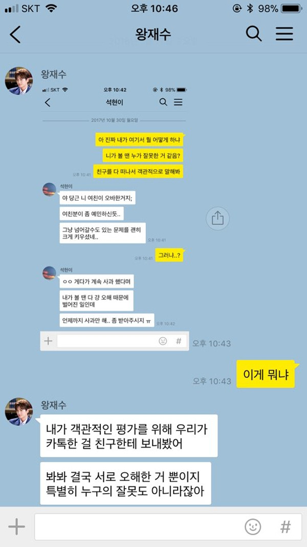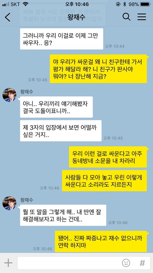 연인과 싸우는 카톡을 캡처해서 친구들에게 보낸다? 연인 관계에 있어 친구들에게 어느 정도의 조언을 얻는 것은 문제될 일이 아니다. 그러나 상대방에 대한 배려 하나 없이 오로지 자신이 옳다는 것을 증명하기 위해 친구들의 도움을 받는다면 더 큰 싸움으로 번질 수 있다. 제3자의 입장을 운운하며 친구의 판단을 내세운다면? 곧바로 이별을 통보 받을지도 모른다.