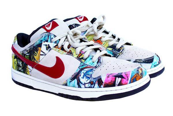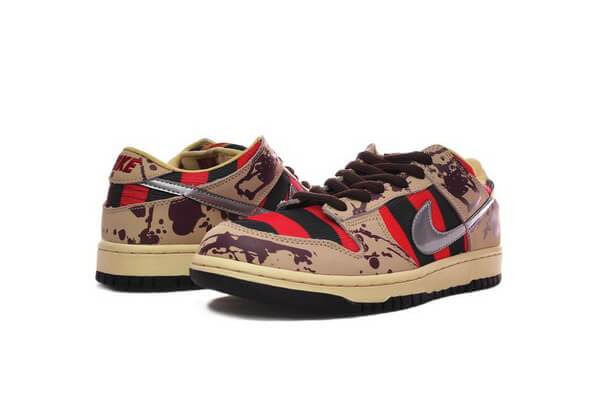 2007년에 발매된 나이키 SB 프레디 크루거는 호러 영화 [나이트메어]에 등장한 프레디 크루거에서 모티브를 따 제작된 신발이다. 핏자국처럼 보이는 디자인에서 알 수 있듯이 호러틱한 느낌을 자아내는 제품. 이 얼룩은 피를 상징하고, 은색은 프레디의 손톱을 상징한다고. 가격은 900만 원대로 알려진다.
