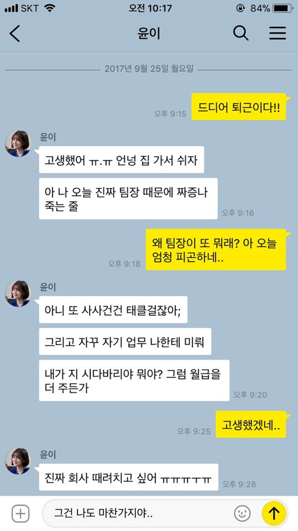여자친구의 시시콜콜한 일과를 듣는 건 좋다. 그러나 너무 피곤한 상황에서 여자친구의 짜증 가득 담긴 직장 얘기까지 듣는 것은 힘에 부칠 때가 많다. 쌓여있는 피로가 두 배로 누적되는 느낌이다. 그렇다고 피곤하니 다음에 이야기하자고 하면 여자친구가 서운해할 게 눈에 보이고, 한 귀로 듣고 한 귀로 흘리자니 또 그럴 수도 없고. 이러지도 저러지도 못하는 애매한 상황이 되어버린다.