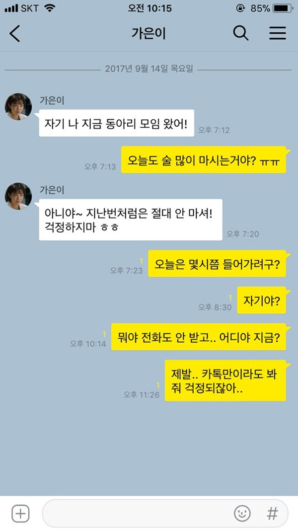 답장이 늦어서 기분이 상한 것은 둘째 치고, 우선 술자리에서 연락이 안 된다면 여러모로 걱정이 앞서게 된다. 연락이 끊긴 사이 어떤 일이 벌어질지 전혀 알 수가 없기 때문. 답장 텀이 길어지더라도 안심할 수 있도록 짧은 카톡을 보내줬으면 하는 것이 솔직한 남자친구의 마음이다. 연락이 안 되는 사이 발을 동동 구르며 이러지도 저러지도 못하고 있을 남친을 생각해주세요~!