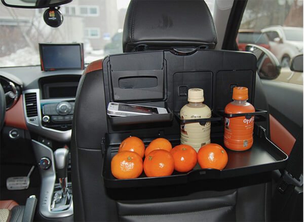 사이즈가 서로 다른 수납공간으로 인해 좁은 공간을 더욱더 효율적으로 활용할 수 있고 이것저것 흘리기 쉬운 아이들이 있다면 더없이 유용하게 사용될 멀티 트레이. 앞 좌석에 연결해 사용하는 멀티 트레이는 그 종류도 매우 다양하다. 많은 수납공간과 테이블의 기능을 갖춘 제품은 노트북이나 패드, 보온병, 티슈, 음료수 등을 안전하게 보관하고 올려놓을 수 있다. 하단부에 냉·온 백이 부착된 제품도 있어 장거리 여행 시에도 매우 유용하다.