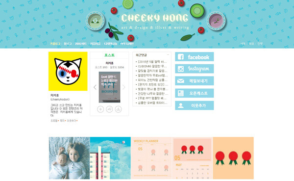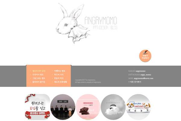 포토샵을 어느 정도 다룰 줄 안다면 앵모님의 블로그가 많은 도움이 될 것이다. 물론 포토샵을 할 줄 몰라도 PPT 만들기에 대한 꿀팁을 제공하고 있으니 조금만 시간을 들인다면 충분히 개성 있는 PPT를 만들 수 있다. 또한 글 중간 중간에 소소하게 남겨진 팁을 읽다 보면 꽤 많은 도움이 된다. 앵모님의 템플릿은 독특하면서도 유니크한 느낌의 디자인이 주를 이루고 있어 독창적인 주제를 갖고 발표를 할 때 유용하다. 적절한 픽토그램과 함께 가독성도 좋아 청중의 집중도를 향상시킬 수 있다.