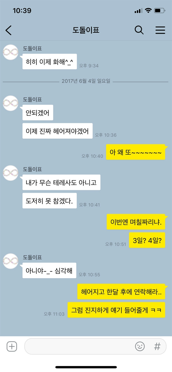 친구의 연애 상담을 들어주는 건 친구로서 마땅히 해 주어야 할 의무(?)와 비슷하다. 친구의 감정 상태를 함께 공유하고 위로하고 다독여주면서 감정을 잘 추스를 수 있게 해주는 건 친구밖에 할 수 없는 역할이기 때문이다. 하지만 매번, 비슷비슷한 일로 이별할까 말까를 고민하고 그 문제에 대해 몇 날 며칠을 함께 얘기하다가도 어느 새인가 화해모드로 돌아서 있는 친구, 그리고 끊임없이 반복되는 이 레퍼토리는 허무하기도 하지만 정말 지겹다.