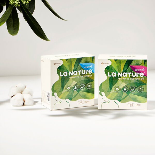 생리대 속에 사용되는 화학적인 흡수체는 생리통을 유발할 수 있고 몸에도 해롭기 때문에 잘 알아보고 선택해야 하는데 유한킴벌리에서 새롭게 출시한 라 네이처 생리대는 스칸디나비아 천연 흡수 소재를 이용해 안심하고 사용할 수 있다. 또한 모든 유기농 기준을 준수했을 때 받을 수 있는 국제 유기농 인증인 OCS100을 받은 100% 유기농 순면 커버를 사용했다. 때문에 간혹 목화씨의 검은 점 등을 볼 수도 있다. 제품에 인쇄된 잉크까지 콩기름으로 인쇄해 더욱 믿음이 간다.