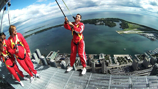 토론토의 랜드마크인 CN 타워는 많은 관광객이 꼭 한번은 들리는 명소이다. 그런데 이 CN 타워에 가면 높은 타워의 꼭대기 층에서도 가장 끄트머리를 아슬아슬하게 걷는 스릴 넘치는 경험을 할 수 있다. 유리 발판 아래를 보면 현기증이 날 정도로 아찔하며 뒤로는 온타리오 호수와 토론토 아일랜드가 보인다. 다양한 자세를 취해서 긴장감을 높이기도 한다고 하니 담력이 좋은 사람들은 도전해도 좋을 것이다.
