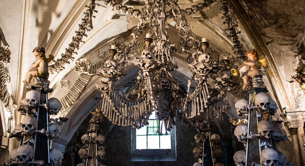 체코의 해골 성당이라고 불리는 곳의 진짜 이름은 세드렉 성당이다. 이곳에 가면 4만여 구의 해골이 예술품처럼 진열되어 있다. 모두 실제 사람의 유골이라고 하니 오싹한 기분이 느껴지는 곳이다. 14세기에 흑사병과 전쟁으로 인해 수습되지 못한 시신이 넘쳐났고, 이를 안타깝게 여긴 수도사가 유골을 지하실에 모아두었다가 이후 해골로 성당을 꾸미게 되었다고 한다.