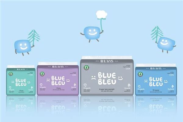 '블루블루'는 3년 이상 화학물질을 사용하지 않은 건강한 땅에서 자란 유기농 목화솜으로 제작되었다. 국제 공식 인증기관의 인증을 받은 100% 유기농 순면 커버를 사용했으며, 커버를 만들 때 물로만 세척하고 압축했기 때문에 형광물질이나 인공색소, 화학비료, 독성, 염소표백 등이 전혀 첨가되지 않았다. 이에 민감한 그날에 발생할 수 있는 피부 트러블을 방지할 수 있고, 환경호르몬의 걱정에서 벗어날 수 있다. 뿐만 아니라 인공향을 사용하지 않고, 천연 편백나무 오일 패치를 넣어 산뜻한 기분을 유지할 수 있게 한다.