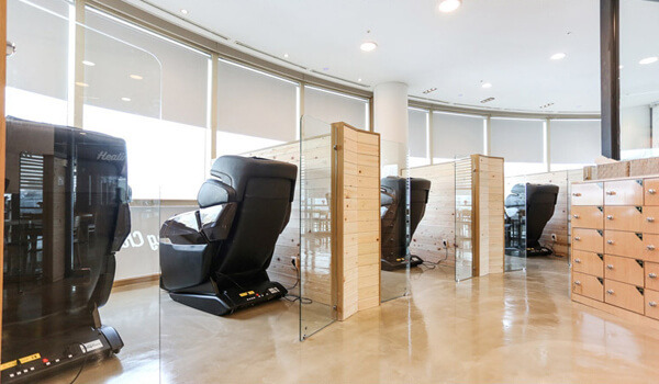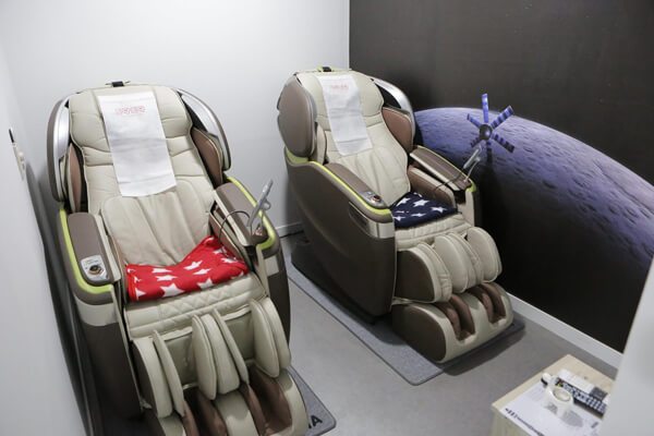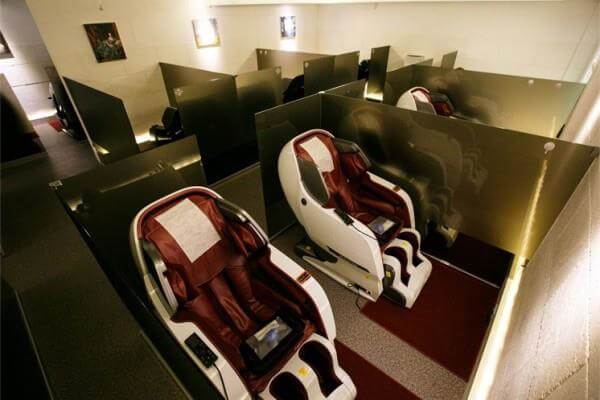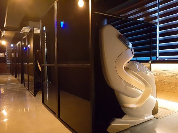 1만 원이 채 안 되는 9,900원이라는 가격에 음료와 안마서비스 복부 찜질까지 즐길 수 있다. 안마 모드를 다양하게 선택할 수 있는데 체중이 분산되는 무중력 자세로 중간 강도의 전신 마사지를 받을 수 있는 모드가 가장 무난하고 인기 있다. 뭉친 어깨 때문에 힘들다면 강력한 집중 케어 기능으로 어깨 근육을 풀어주는 시원안마 모드를 선택하면 좋다. 낮은 조명과 함께 적절한 습도를 유지해주는 무드등이 있어 편안한 분위기를 극대화해준다. 여기에 각 방마다 산소 발생기가 있어 안마를 즐기는 동안 보다 쾌적함이 유지된다.