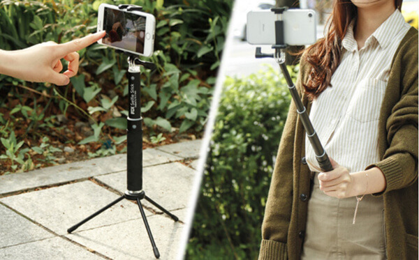 픽스에서 출시한 셀피스틱 셀카봉인 FIX XTS-301은 기존에 셀카봉을 사용할 때 불편했던 점을 모두 보완한 제품이다. 일단 가장 큰 장점은 셀카봉과 삼각대로 모두 활용할 수 있다는 점이다. 기본 구성을 주문하면 미니 삼각대가 포함되어 오는데, 셀카봉 하단부의 견고한 라킹 너트와 미니 삼각대를 연결만 하면 되므로 간편하다. 이렇게 삼각대로 연결하면 기존의 셀카봉과는 또 다르게 전신사진과 단체 사진도 쉽게 찍을 수 있다.