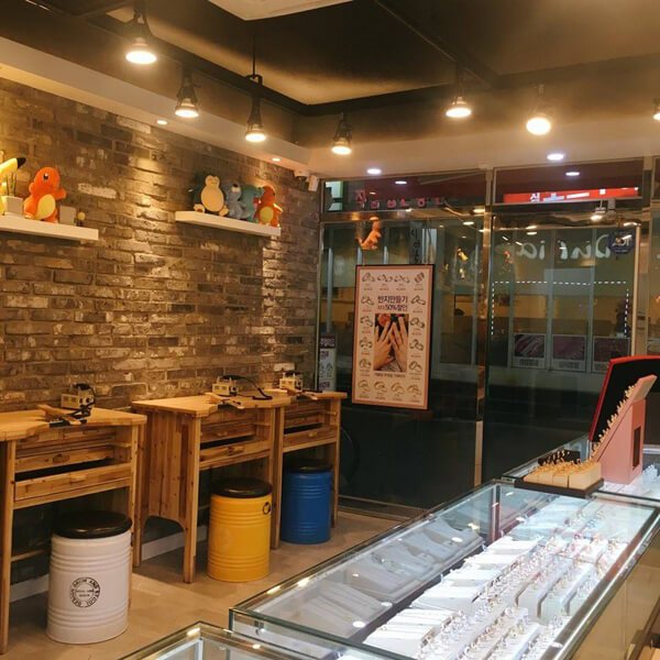 루소주얼리는 직접 반지 만들기 체험을 할 수 있는 공방으로, 은이나 금으로 된 커플링을 직접 만들고 싶은 커플에게 꼭 맞는 곳이다. 루소주얼리에 도착해서 만들고 싶은 반지의 디자인과 호수를 선택하면 본을 떠서 가져다준다. 이를 기반으로 함께 가공작업을 하고 각인도 새기는 체험을 할 수 있다. 1시간 정도 함께 반지를 가공하다 보면 재미있는 추억도 남길 수 있다.
