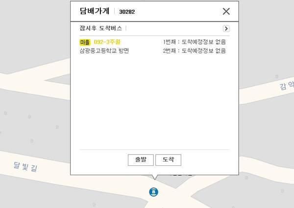 경기도 파주시 적성면 달빛길 120, 이 한적한 시골마을에는 담배가게라는 버스정류장이 있다. 마을버스가 다니는 나름의 큰 길이고 도로에는 노인 보호구역이라는 경고 문구가 눈에 띄게 칠해져 있을 정도로 어르신들이 자주 이용하는 도로이기도 하다. 뿌연 연기 속 작은 가게에서 흘러나오는 담배가게 아가씨 노래가 연상되듯 담배가게라는 말이 지금은 과거의 향수를 불러일으키는 단어가 되어버렸지만 아직 이곳에는 존재하고 있다. 아마 예전에 이곳 주변에 담배가게가 분명 있었을 것이다. 현재 상호는 없지만 담배를 판매한다는 KT&G의 표시판이 붙어 있긴 하다.