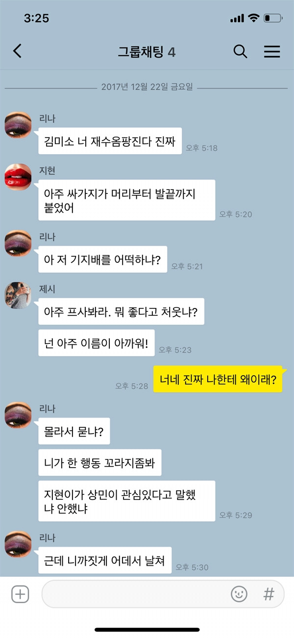 시대를 막론하고 어느 곳에서나 강자와 약자가 존재했다. 어떻게 보면 자연의 섭리이기도 하다. 하지만 10대 사이에서 흔하게 일어나는 강자와 약자 사이의 이야기는 조금 다르다. 이유 없는 괴롭힘과 왕따는 한 사람의 인생을 비참하게 만들 수 있다. 과거 때리고 빼앗는 물리적 폭력이 주를 이루었다면 이제는 카톡까지 침범해 24시간 장소를 가리지 않고 행해지고 있다. 교육부가 발표한 학교폭력 및 조치 현황 자료에 따르면 전체 학교폭력 건수는 감소 추세를 보이고 있으나 같은 기간 내 사이버 폭력은 1.62배 증가했다는 사실을 확인할 수 있다. 점차 진화하는 학교폭력으로 갈 곳을 잃고 있는 10대 청소년들이 증가한 셈이다. 10대 사이에서 흔하게 벌어지는 카톡 대화를 통해 청소년들의 단면을 적나라하게 소개한다.