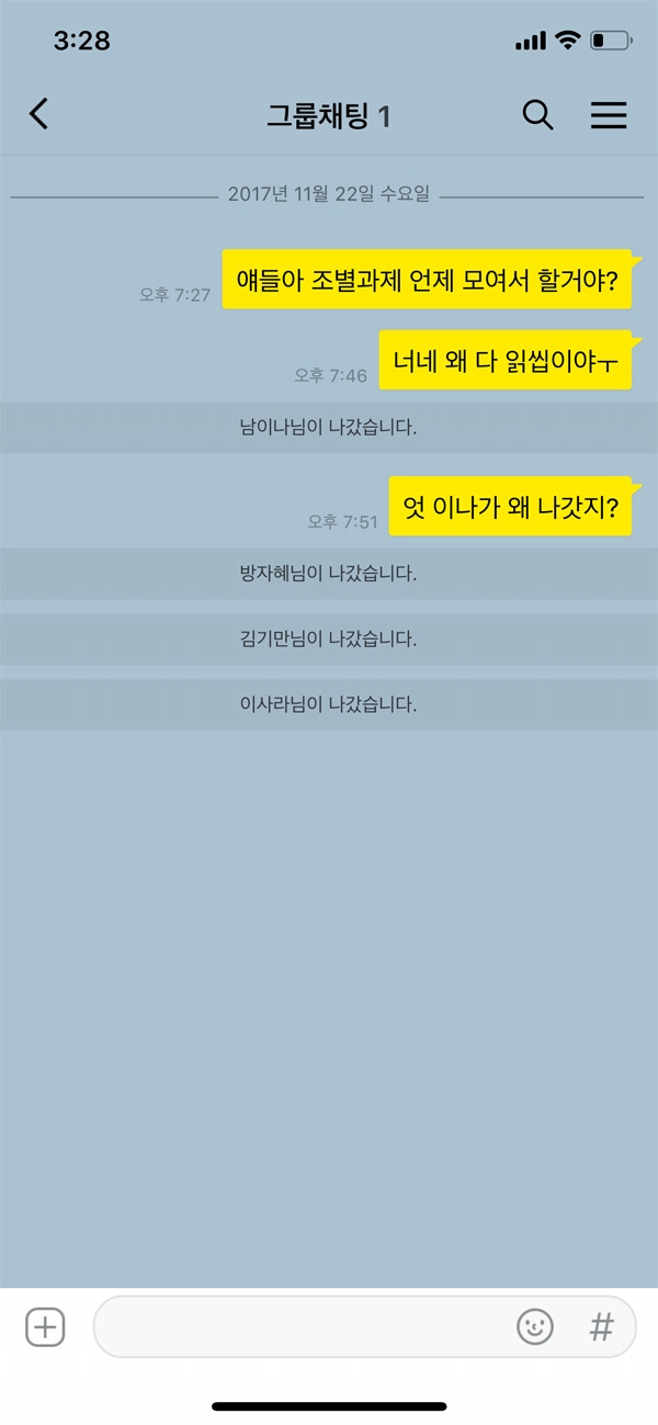 마치 개미지옥이 이런 것일까? 한번 발을 들여놓으면 웬만해서는 쉽게 나갈 수가 없다. 처음부터 그 단톡에 있지 않았더라도 강제로 초대당해서 괴롭힘을 당한다. 나가고 나가고 또 나가도 계속 초대하고 여럿이 동시에 메시지를 보내고 욕하면서 상대방을 괴롭히는데 카톡 감금 혹은 카톡 감옥이라고 부르기도 한다. 단톡에 설정을 따로 해놓지 않는 이상 계속해서 울리는 알람 때문에 배터리 소모는 물론이거니와 정신적으로도 상당한 고통을 받을 수 있다.