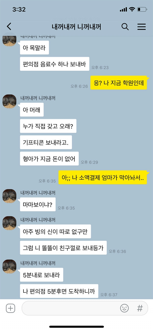 스마트폰으로 소액 결제를 이용할 수 있게끔 해놓은 경우 기프티콘을 요구하는 경우가 많다. 혹은 게임 아이템과 같은 소액 결제도 대리 결제하게끔 할 수 있다. 큰 금액이 아니다 보니 한 번쯤이야 하고 넘길 수 있겠지만 반복되면 핸드폰 요금이 많이 나오게 되고 습관처럼 변이돼 매번 요구할 수 있다. 때문에 부모는 아이의 핸드폰 요금이 갑자기 많이 나오면 아이의 상황을 예측해보고 충분한 대화를 하는 것이 좋다.