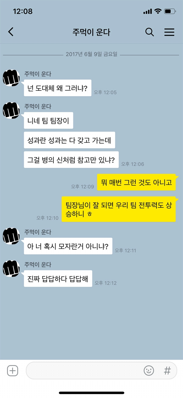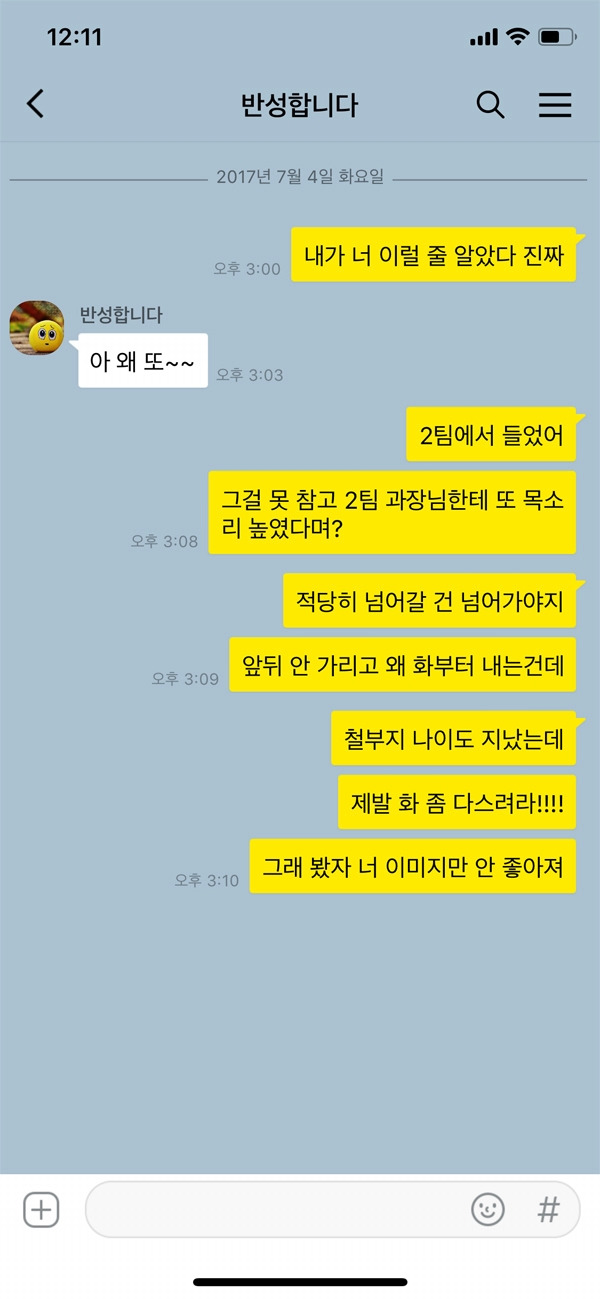 화가 날 상황이라면 화를 내는 것이 맞다. 화내지 못하고 속으로만 끙끙 앓는다면 화병이 생길 수 있고 그에 따른 스트레스도 상당할 것이다. 다만 화를 내더라도 ‘정도’가 있어야 한다. 너무 감정에 휩쓸리지 말고 적정선을 지켜야 한다는 것인데 ‘화’라는 존재가 평소에도 내재되어 있는 사람이라면 조그만 일에도 쉽게 화를 내고 감정을 추스르지 못하는 경우가 많다. 늘 화를 안고 사는 사람들, 그런 사람은 평소 어떤 모습을 보이는지 아래 대화로 확인해보자.