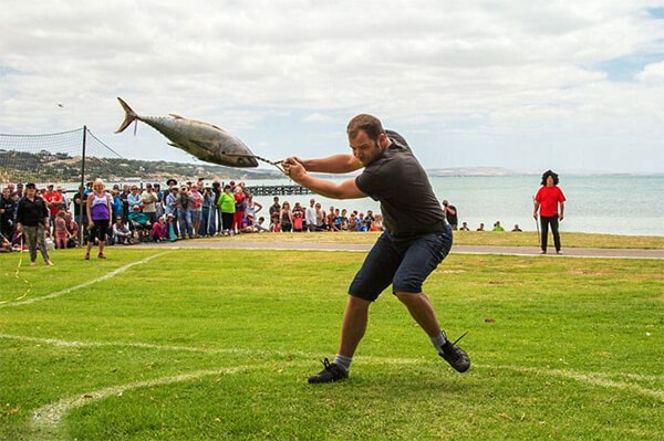 호주 남부의 항구도시인 포트링컨에서는 매년 1월 튜나라마 페스티벌이 개최된다. 거의 60년 가까이 열린 이 페스티벌에는 다양한 먹거리와 즐길 거리 외에도 참치 멀리 던지기 대회라는 이색적인 대회가 펼쳐진다. 이 지역은 대표적인 참치 양식장으로 과거에는 10kg 정도 되는 진짜 참치를 이용해 가장 멀리 던지는 사람에게 상금을 수여했다. 하지만 참치 값이 오르면서 비슷한 무게의 폴리우레탄으로 만든 모형 참치를 이용하고 있다. 국적이나 성별 관계없이 누구나 참여할 수 있으며 물론 던지는 방식도 자유다. 참고로 1998년 해머던지기 선수가 37.23m를 기록한 이후 지금까지 이 기록을 깬 도전자가 없다.