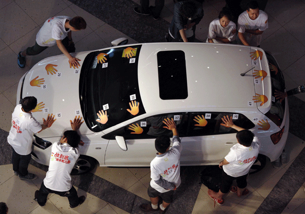 화장실도 안 가고 먹지도 않고 주저앉지 않고 꿋꿋하게 한 손바닥만 대고 버틴다면 바로 맞대고 있는 그 차가 당신 것이 된다. 중국에서 열리는 자동차 오래 만지기 대회가 바로 그것인데 자동차에 붙어 있는 손바닥 모양의 스티커에 자신의 손을 대고 그냥 버티기만 하면 된다. 최고 오래 버텼던 사람은 2013년 당시 이십 대 여성으로 무려 51시간 16분을 버텨 결국 15만 위안(약 3천만 원) 상당의 자동차를 선물 받았다고 한다.