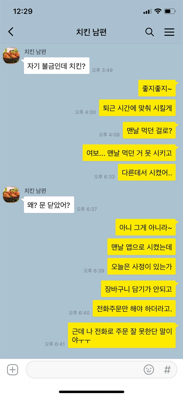 배달음식 전문 앱이 개발되기 전, 소심한 사람들에게 주문전화는 매우 난제였다. 일대일 대면하는 것이 아니라 수화기를 통해 한 번 걸러 전해지는 목소리라 부담스럽기도 하지만 보통 주문 전화가 몰리는 시간에 하다 보니 상대방의 목소리 톤은 살짝 올라가 있고 빠른 편이다. 소심한 사람들의 경우 목소리가 크지 않은 편이라 상대방은 제대로 주문받기가 어렵고 다시 되묻는 상황이 만들어진다. 이런 상황을 피하기 위해 배달음식은 꼭 앱으로 주문하고 아무리 리뷰가 좋은 업소라고 해도 전화주문만 가능하다면 다른 곳을 찾는다.