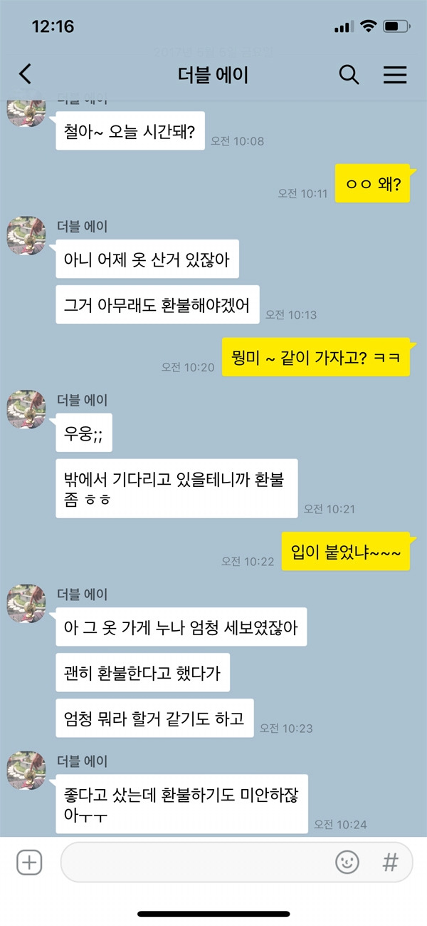 온라인에서 구입한 물건을 교환하거나 환불할 때는 상관이 없지만 오프라인에서 구입한 물건을 교환하거나 환불해야 할 일이 발생했을 때 누군가에게 도움을 요청하는 일이 종종 발생한다. 제품에 하자가 있는 경우에는 그나마 괜찮다. 하지만 본인 마음에 들지 않아 교환이나 환불을 요청할 때에는 판매자에게 괜히 미안하기도 하고 싸늘한 눈초리로 쳐다볼까 봐 그것이 두려워 미루는 경우가 많다. 도와줄 사람이 전혀 없다면 그 물건은 결국 집 한편에 고이 모셔두게 된다.