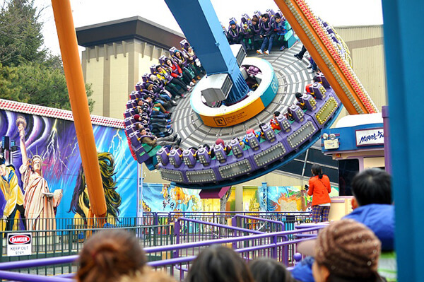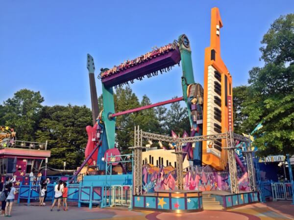 엘비스 프레슬리가 공연한 스테이지를 옮겨 놓은 듯한 더블 락 스핀은 강렬한 로큰롤 리듬과 함께 끊임없이 스핀 하는 놀이기구다. 20m 높이에서 연속 4회전을 하는 짜릿함, 앞뒤로 360도 회전하면서 꽤 재미있는 스릴감을 준다. 놀이기구에 몇 명이 탑승하느냐에 따라 스핀 횟수나 강도가 달라져 탈 때마다 색다른 재미를 느껴볼 수도 있다. 특히 한여름에는 더블 락 스핀 앞에 대형 분수대에서 시원한 물줄기가 뿜어져 나와 회전할 때마다 더욱 즐겁게 한다.
